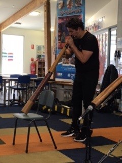 He spoke of his connection with land, culture, storytelling & music. Lucas passed on his hints for writing and shared his talents on traditional instruments such as digeridoos, clap sticks and boomerangs.