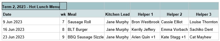 At this stage until we find a new Hot Lunch Co-ordinator there will be no hot lunches in Term 3.